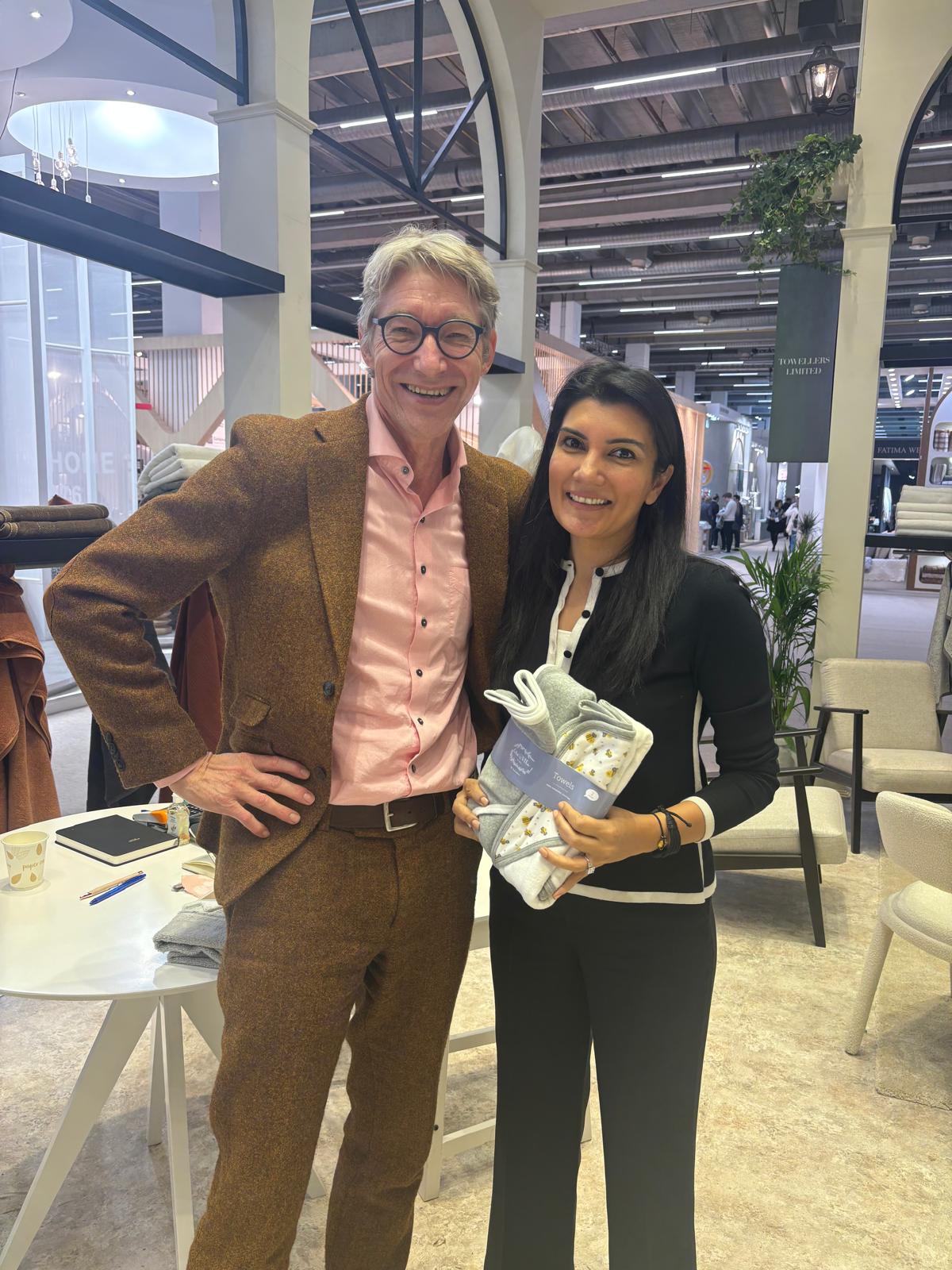 The CEO of towellers with products from baby collection